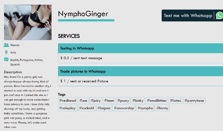 Ich liebe Dirty Talk, zeige meinen Körper und werde manchmal pervers. Ich habe eine wunderschöne rosa Muschi, einen bösen Verstand und eine sexy Stimme. Bitte, lass uns miteinander abspritzen.