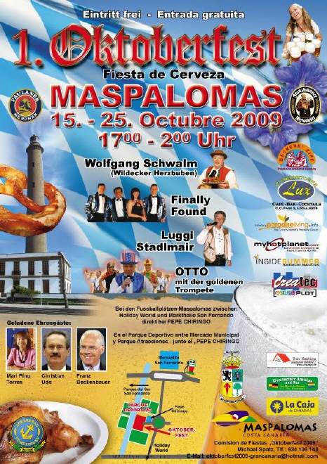 Die Atmosphäre des bayrischen Oktoberfestes, können Sie auch auf Gran Canaria spüren. Am 16. Oktober eröffnet das 1.Oktoberfest in Maspalomas, neben dem Stadtsportplatz um 17:00 Uhr,täglich bis 02:00 Uhr geöffnet.