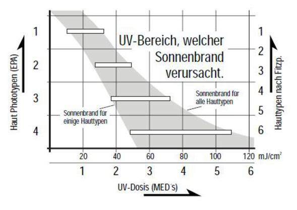 Deshalb wurden z. B. vom EPA (Environmental Protection Agency) sogenannte Hauttypenkategorien entwickelt, welche je nach Hauttyp die Sonnenbrand-Gefahr angeben.