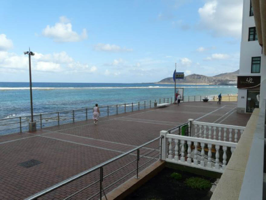 Dieses schöne grosse Studio liegt direkt am der Playa las Canteras in Las Palmas verfügt über 1 Bad mit Badewanne und WC,
