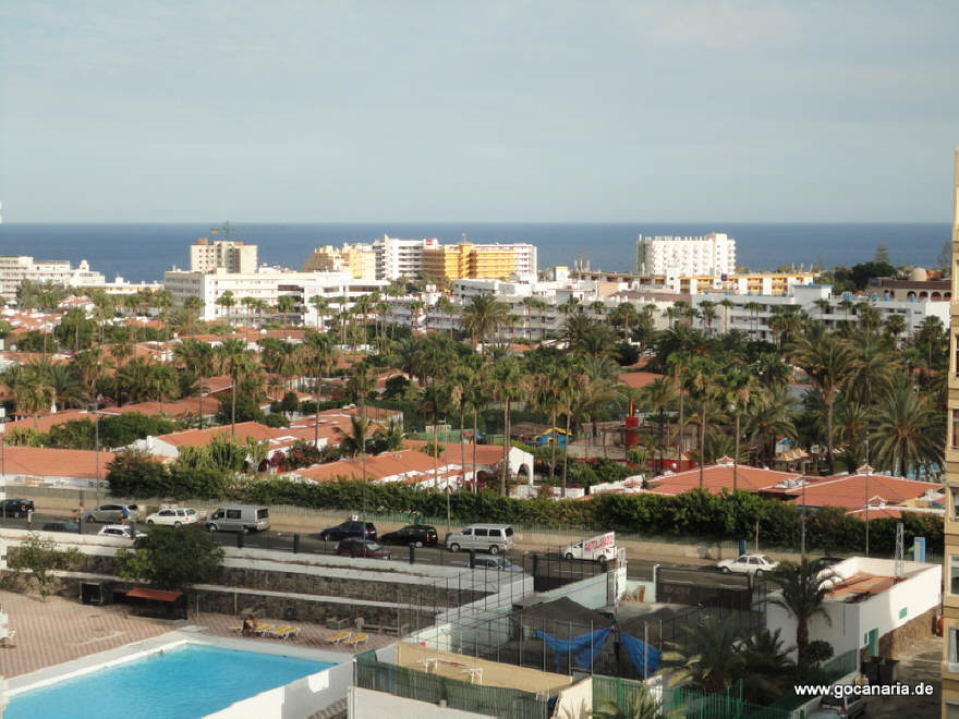 Diese geräumige Mietwohnung liegt an zentraler Lage in Playa del Ingles und ist sehr preiswert mit Pool und Meersicht.