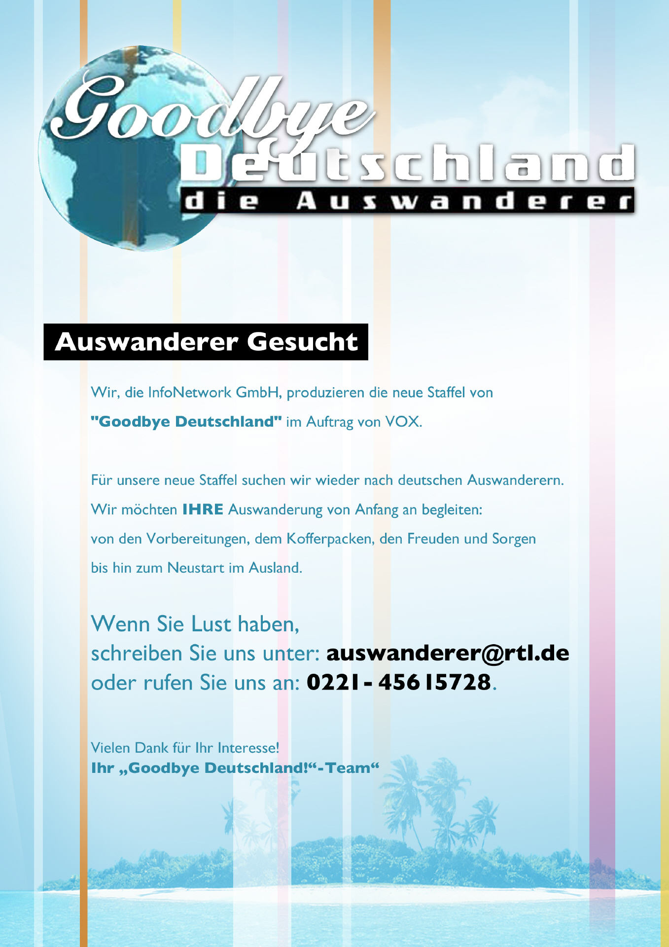 Auswanderer für das Fernsehen Gesucht ...