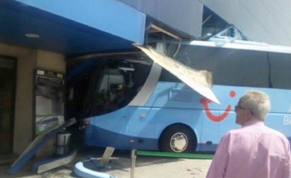 Gran Canaria 22.6.2015 - Bus fährt in den Eingang der Abflughalle vom Flughafengebäude