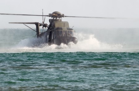 Der Such- und Rettungsdienst 'SAR' simuliert eine Notwasserung eines Passagierflugzeuges im Süden von Gran Canaria