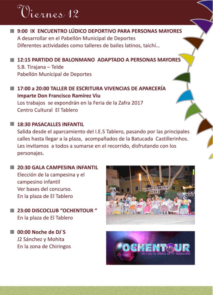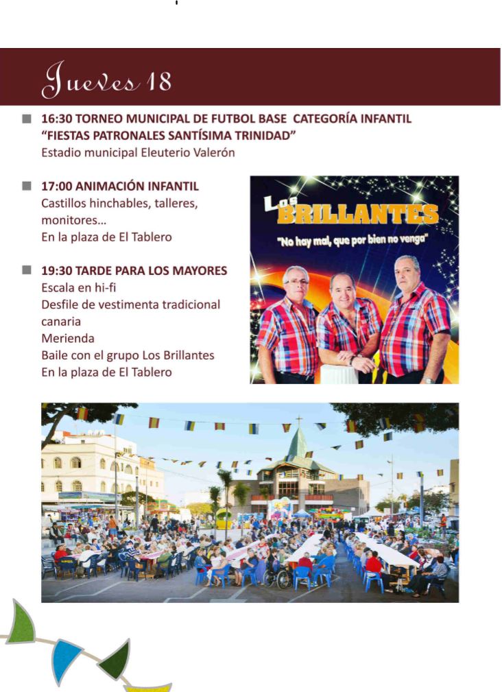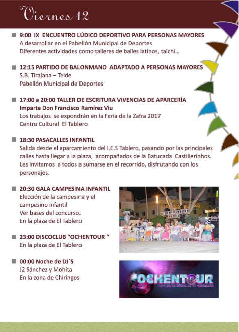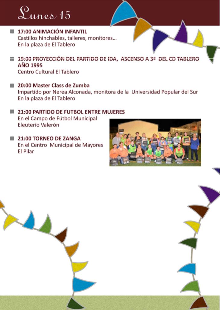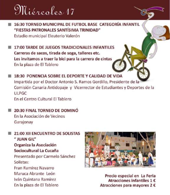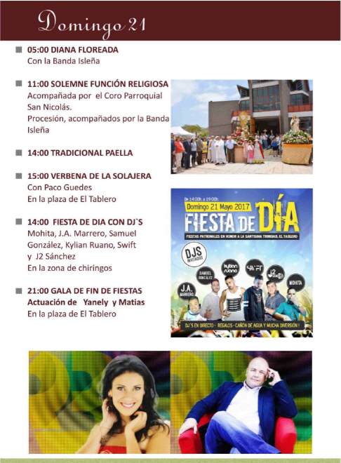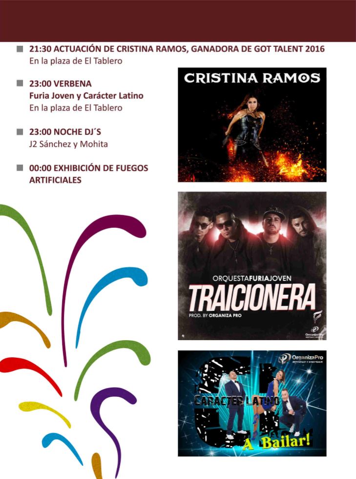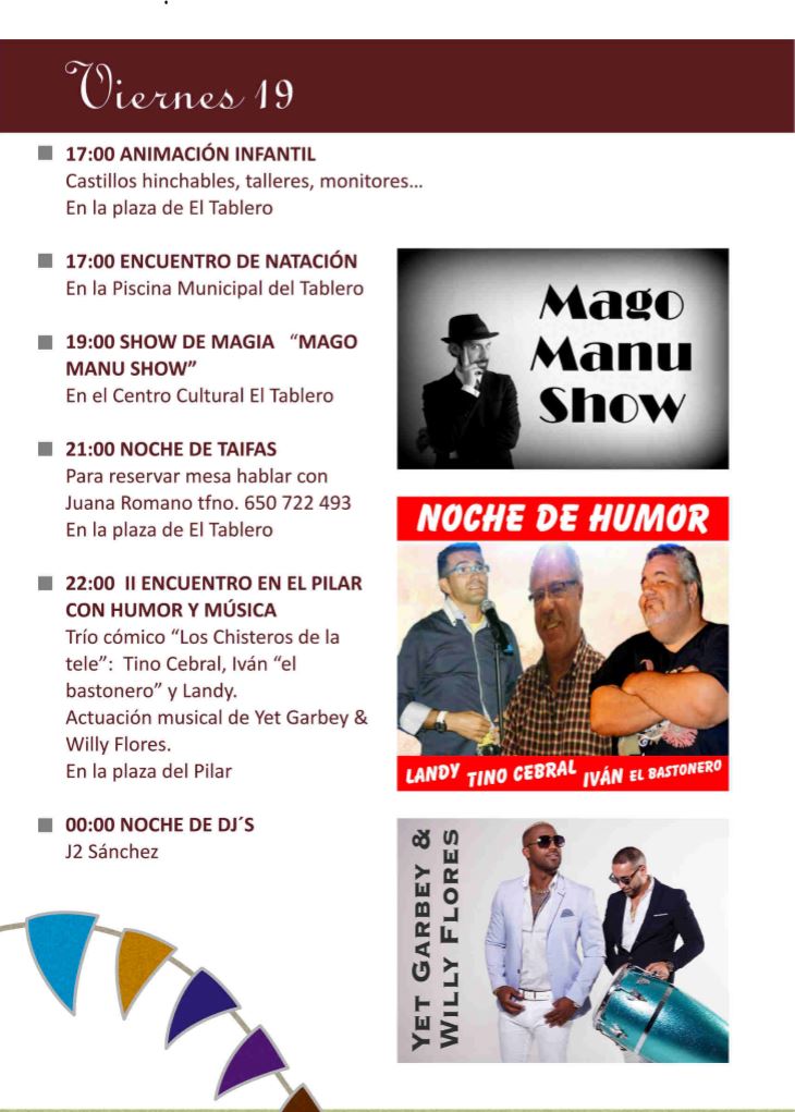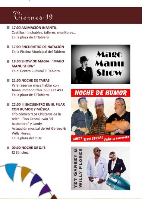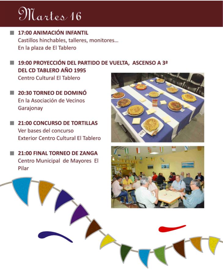 Schauplatz der Veranstaltungen ohne andere Ortsangabe ist die Plaza von El Tablero wo auch die Kirche ist.